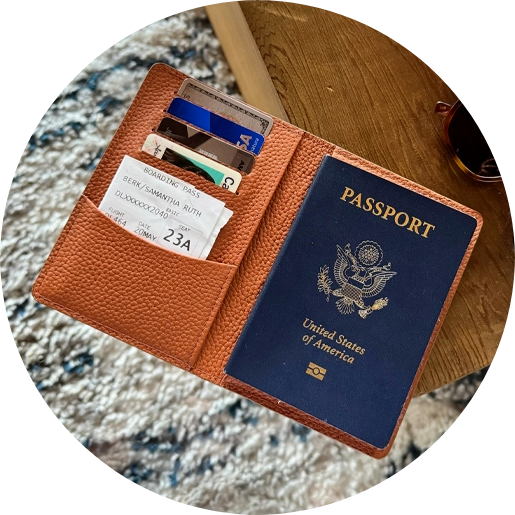 Introducing our sleekly designed passport holders that seamlessly slide into any pocket or bag. Crafted as the perfect pocket companion, these holders feature four card slots—two on each side—and a convenient middle pocket. Bid farewell to loose cards and bulky wallets with this stylish and practical solution.